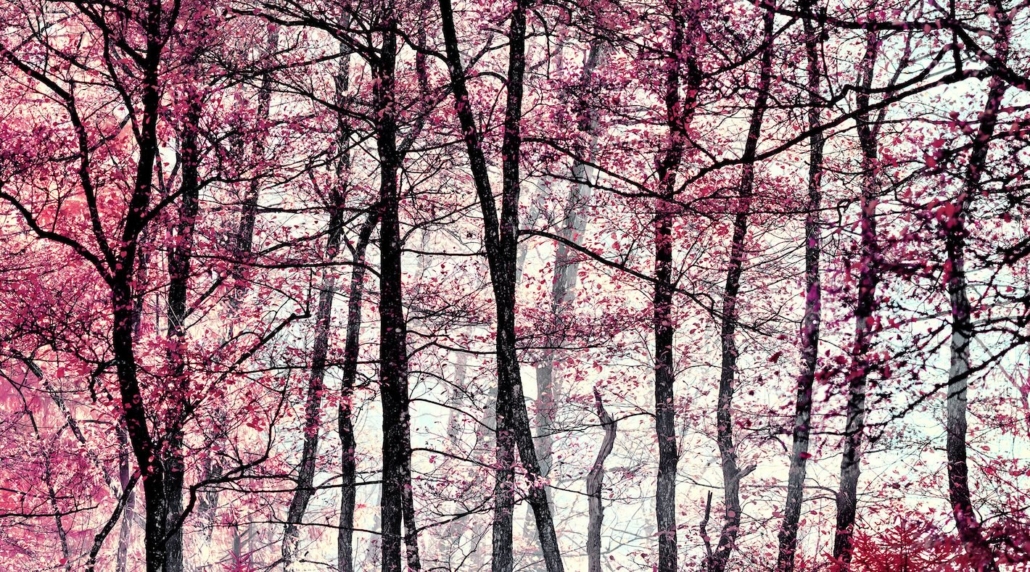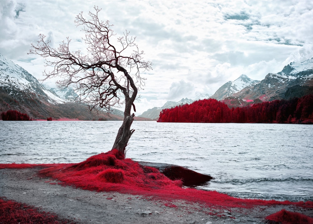 Die Zellstruktur der Blätter hingegen reflektiert das -Infrarot-Licht besonders stark. Das liegt daran, dass eine starke Absorption nur zu einer Überhitzung der Pflanze und möglicherweise zu einer Schädigung des Gewebes führen würde. Das menschliche Auge ist nicht in der Lage, infrarotes Licht wahrzunehmen, aber genau diese reflektierte Energie reagiert mit infrarotempfindlichem Material und erzeugt elektrische Rosa- und kräftige Rottöne.